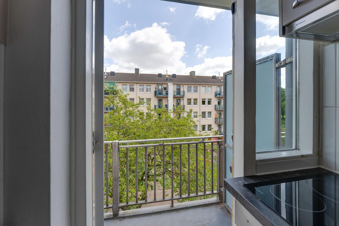 Via het keurige en recent gerenoveerde gemeenschappelijke trappenhuis bereikt u het 2 -kamer appartement, gelegen op de derde etage. Via de eigen entree met ontvangsthal, heeft u toegang tot de woonkamer gelegen aan de voorzijde. De ruime woonkamer beschikt over veel daglicht en biedt toegang tot het 1e balkon, gelegen op het Westen. Aan de achterzijde bevindt zich de moderne keuken, welke is voorzien van inbouw apparatuur. Vanuit de keuken bereikt u het balkon op het Oosten, waar u heerlijk van de ochtendzon kunt genieten. Gesitueerd aan de achterzijde van het appartement treft u de ruime slaapkamer me voldoende opbergruimte. Vanuit de slaapkamer heeft u toegang tot de moderne badkamer, is voorzien van een inloopdouche, wastafel en de aansluiting voor wasmachine/ droger.
