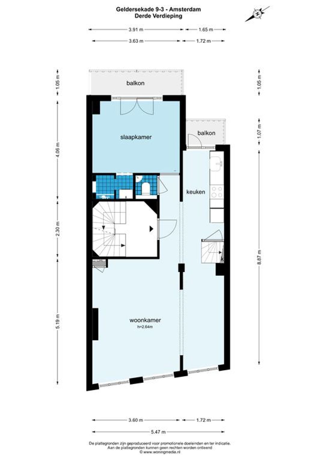 -Drie kamerappartement van ruim 70 m2 gemeten volgens de nen2580