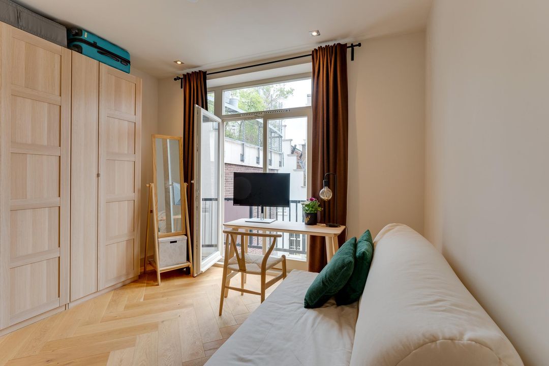 Recently luxuriously renovated three bedroom flat of approximately 70 m2 located in a stately canal house on the historic Geldersekade. The FULLY FURNISHED flat features a very spacious living room with beautiful views, a luxurious open kitchen, two good sized bedrooms, a modern bathroom and two balconies at the rear. This top-floor flat is located in the centre near the Nieuwmarkt and Central Station and has recently been completely renovated with a lot of love, care and eye for detail.